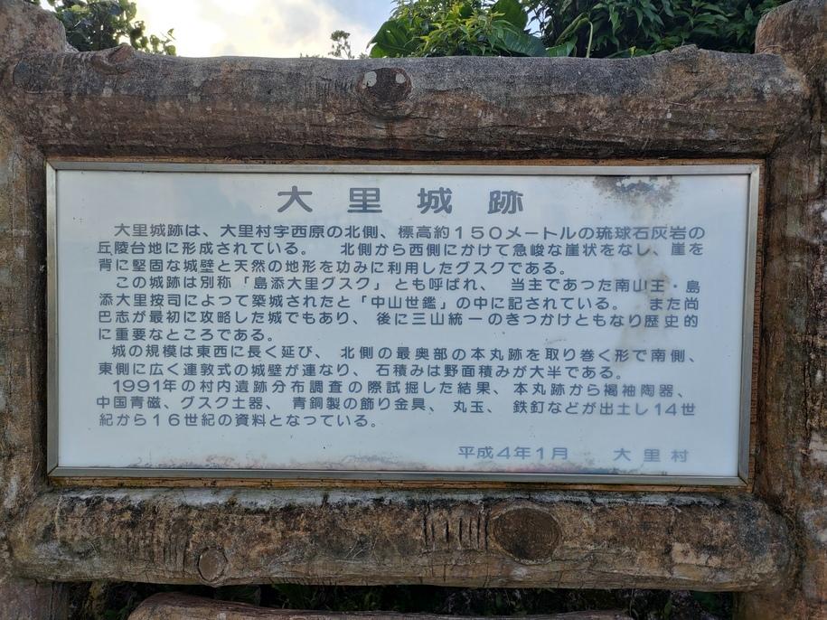 島添大里城碑・説明板 大里城跡説明板