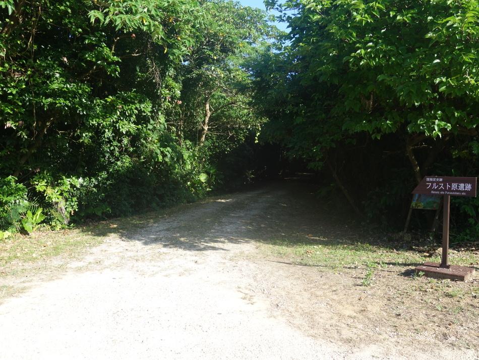フルスト原遺跡碑・説明板 入口矢印