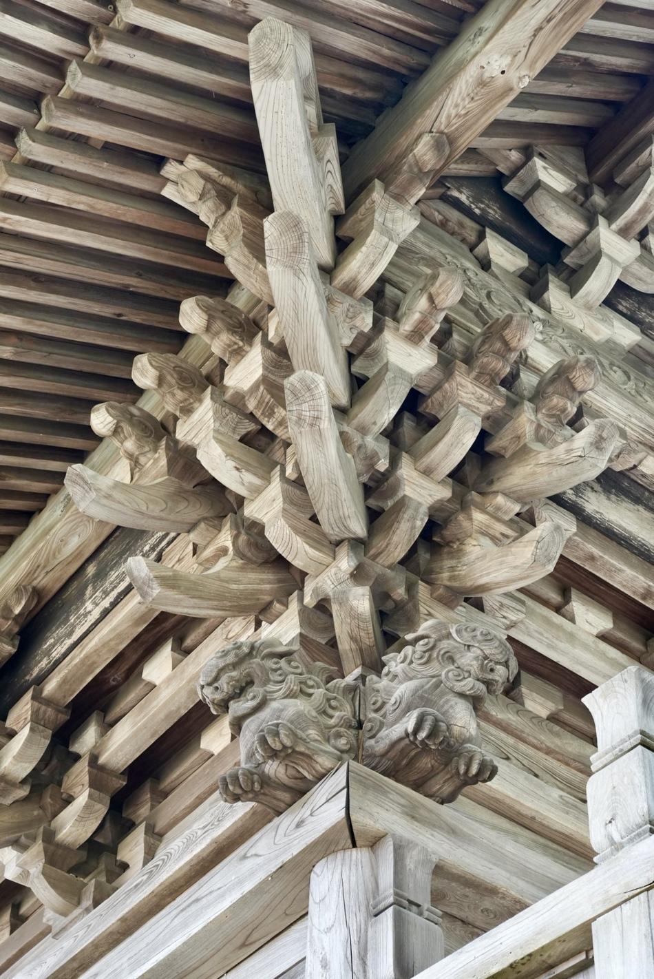 ③④社殿。江戸時代寛永10〜11年(1633〜34年)に改築された社殿。龍・獅子・虎などの縁起物の彫刻が確認でき、見応えがある。