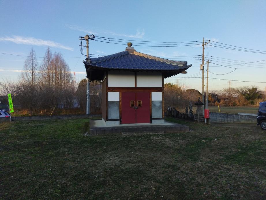 陣屋場所は圏央道の桶川北本インターのすぐ脇で、遺構は消滅しています。跡地には牧野薬師堂が建っていますが、風土記稿の記載では、構の内に太神宮八幡の合社と稲荷弁天の合社があるとしており、関連は不明です。