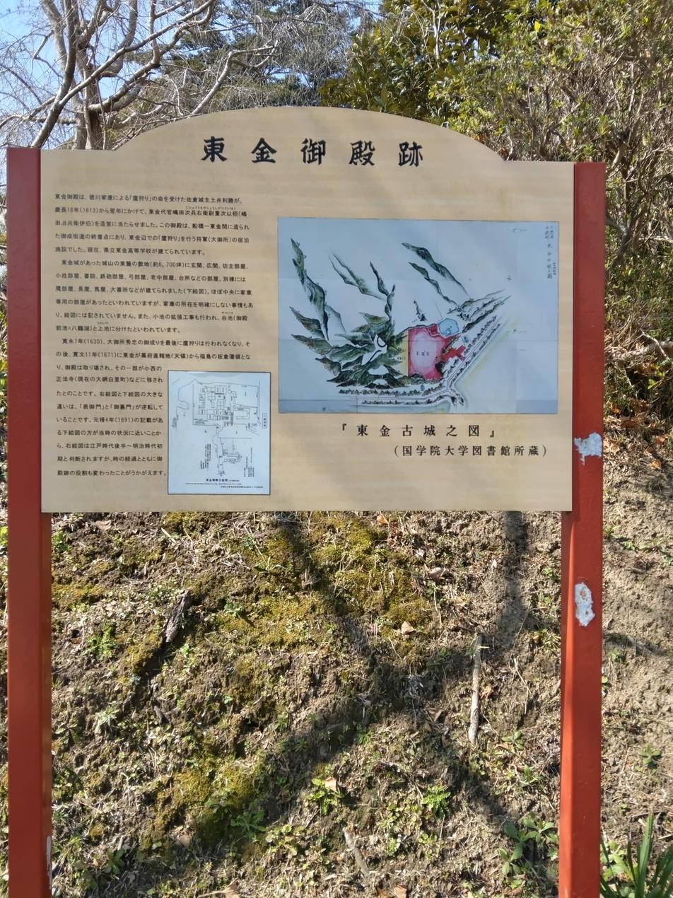 東金城の跡地には、慶長18年(1613)徳川家康の命により、里見氏の館山から見て「鬼門」の方向にあたる場所に、鷹狩りの際の宿泊施設という名目で、里見氏に圧力をかける狙いで「東金御殿」が築かれた。