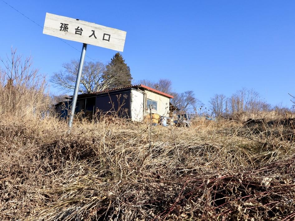 孫台の丘陵は後世に全山耕作されていたらしく、今も南側斜面では小さな果樹園が営まれている。見るべきものは特に無いが、丘陵頂部の東端には確かに円墳が残っており、狼煙台や物見台の役目を果たすのにはこれでも十分であったろう(守る必要が全く無い。物見を終えて狼煙を上げたら逃ればよい。)。ちなみに周囲も含めて樹木があまり生えていないので展望は今でもすこぶる良い。