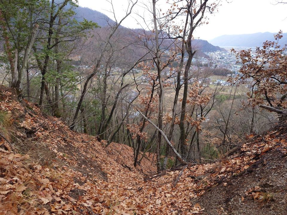 千曲市新山の見性寺の南側から上山田配水池という水道施設まで普通車でも登れる道路があり、駐車スペースもあります。そこからは案内に従って遊歩道を登れば迷うことはありません。地元の方による整備も行き届いていて見やすい状態が保たれています。