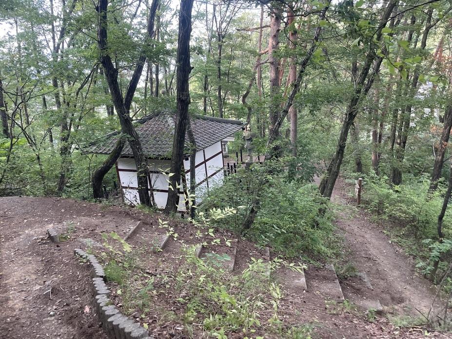 写真⑦だと見えにくいかも知れませんが主郭の一段下も削平地になっていて主郭を守る為の曲輪だったと思います🤔主郭から下っていくと堀家墓所(写真⑧)が見えてきました。