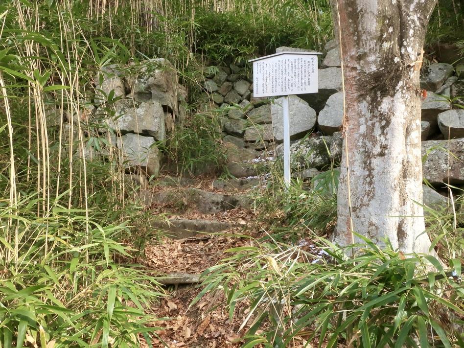廟所の方は、天保十二年(西暦1841年)に焼失してしまったそうだから現況は墓所に等しい状態、誰も気付かないような場所に3基の五輪塔がひっそりと佇んでいる。残された石垣は大変立派なものだが全体的には寂れた感じだ。