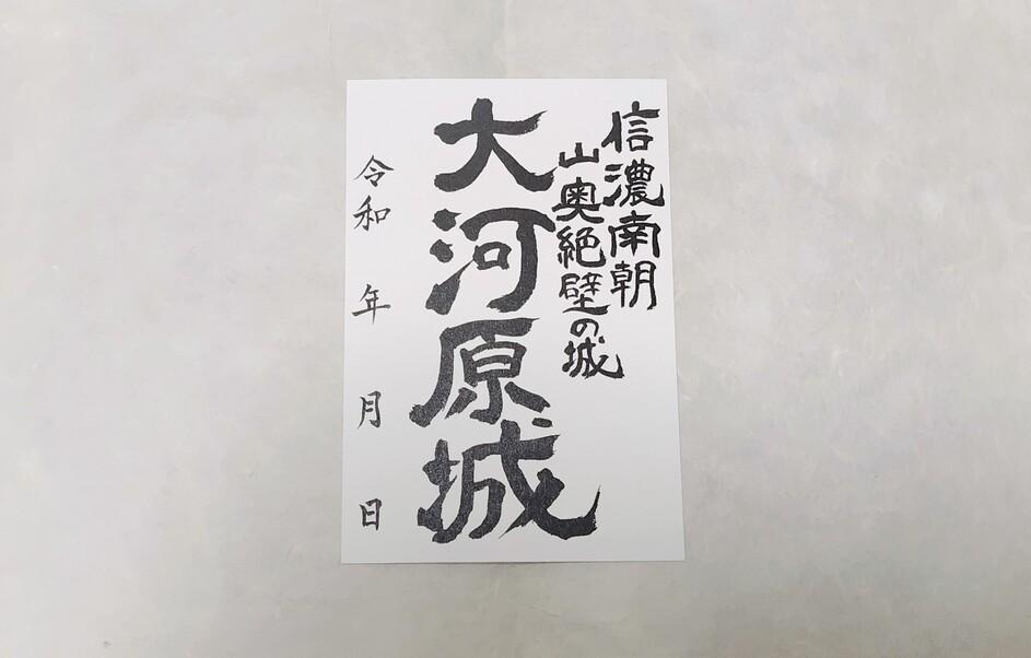 武将印は販売されているのに大河原城の御城印が無い…。大鹿村観光案内所(道の駅内)で「御城印が欲しい」と話しました。それから久しぶりに訪ねると御城印の販売が始まっていました。