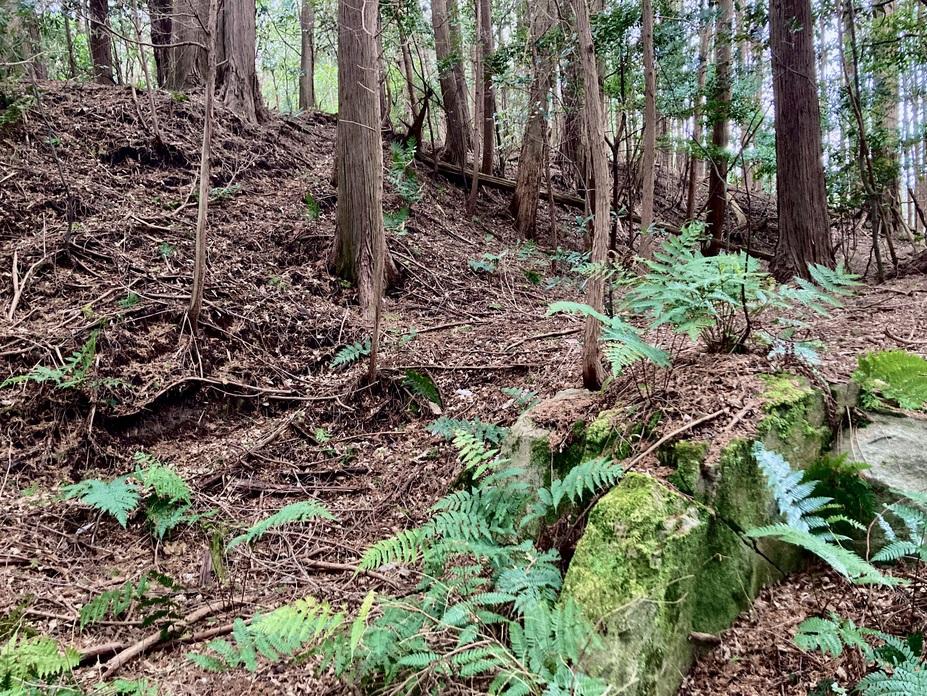 永井氏城との間にも浅い堀切や石積み、古墳が確認できます。