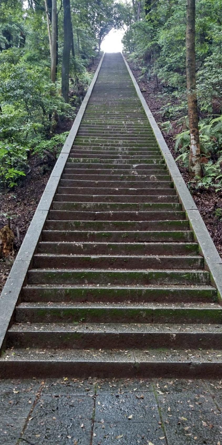 この日は雨が降ったり止んだり生憎のお天気…ったく誰だよ雨女はアタシだよ。豊国廟は標高196mの阿弥陀ヶ峰の山頂にある。廟へ続く石段は489段(異説あり)。見上げても頂部は見えない。…これ、上るんか?いや、お姉さん高所恐怖症やし止めとく。下で待っとく…て思ってたのに!おじいちゃん達、躊躇なく上がってく!はぁ…とりあえず行くか。アカンかったら引き返すし…。にしても手摺無いてどゆこと?怖いっ!足指一家10人、力を入れて進む。ううん、傘の先端入れて11人。杖替わりの傘ちゃんが重要な役割を担ってる。因みに傘の先端の名称知ってる?石突きって言うのよ。だからお姉さんの使い方は正しいの。でもお姉さん、石突きが隙間にぶっ刺さって足を取られ、危うくすっ転びそうになったわ!みんなも気を付けるのよ!