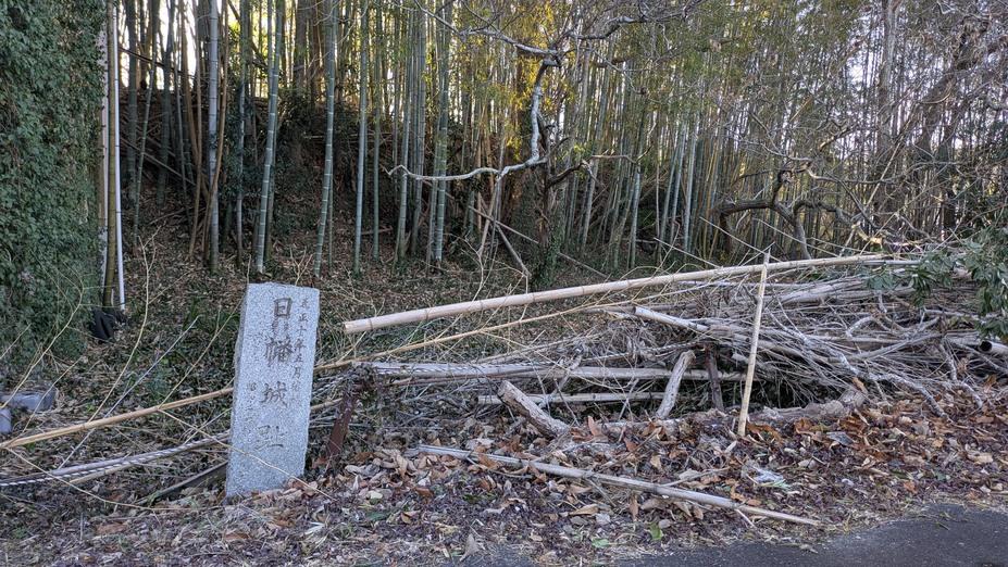丘城(40m)で日幡氏が城主を務めていた。遺構は石碑の近くに横堀が複数残っている。また、石碑の裏の山も気になる。