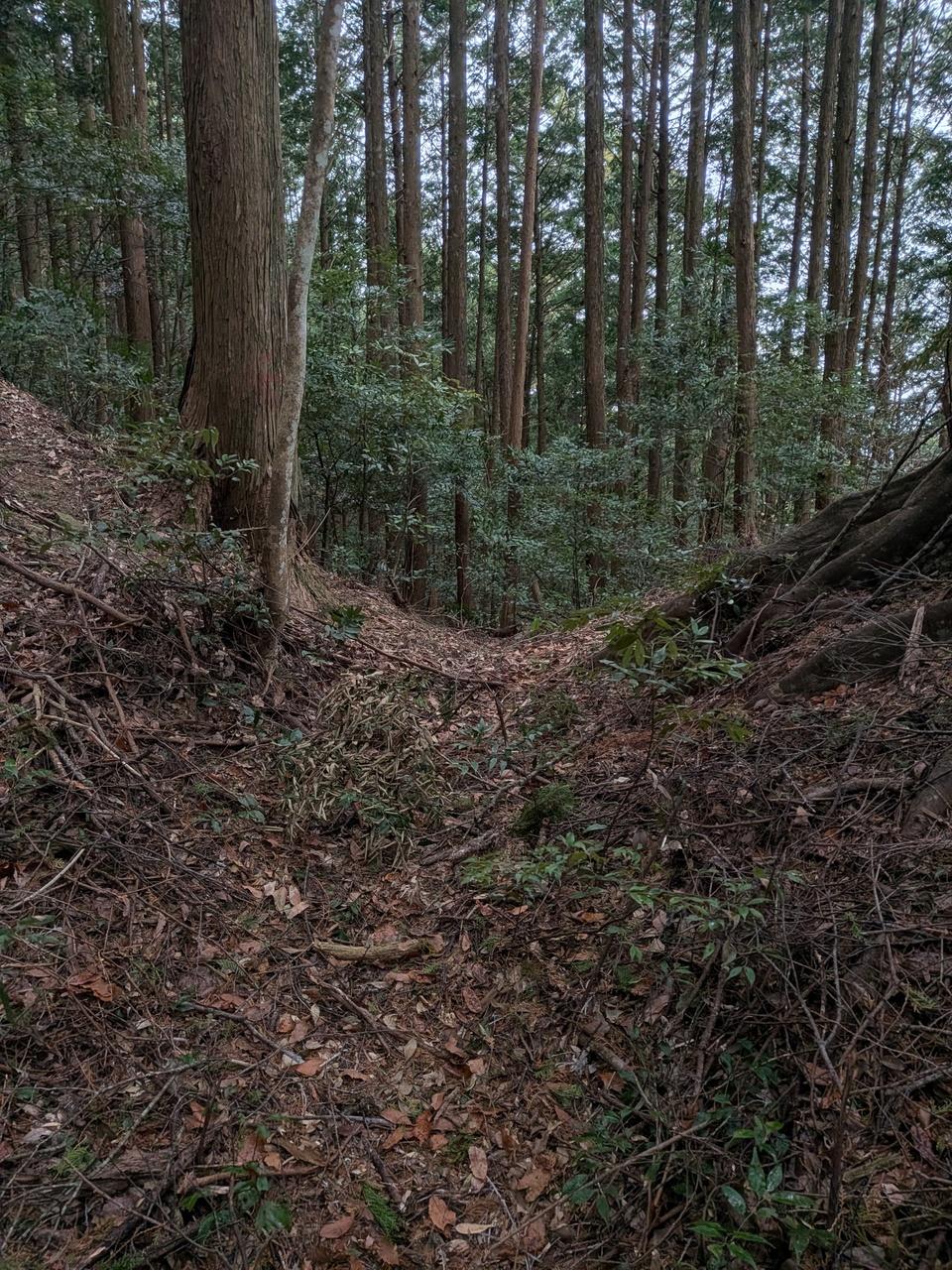 登城路から急斜面を20分程登ると西第6曲輪から段郭が続き所々ロープを伝いながら登ると主郭に到着。主郭からは三間盆地が見渡せます 🫡